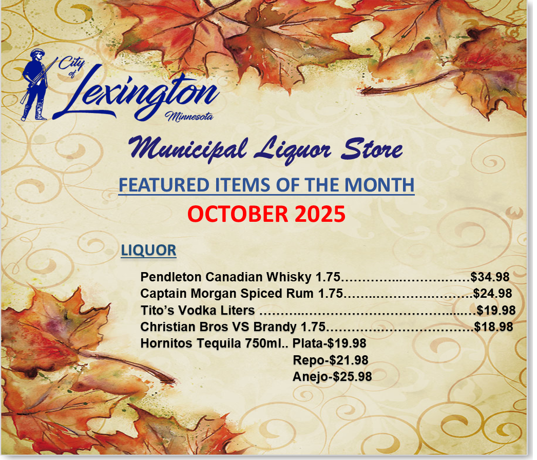 Lexington Liquors 9271 South Highway Drive Lexington, MN 55014 Ph: 763-786-0198 Fax: 763-785-8951 Email